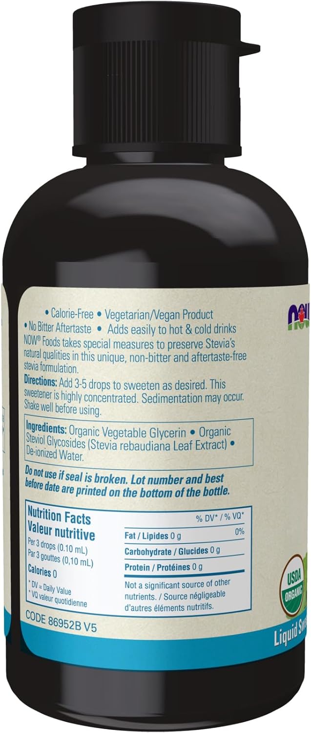 NOW Foods BetterStevia Organic Glycerite Zero-Calorie Liquid Sweetener Keto Friendly, Suitable for Diabetics, No Erythritol, 60ml
