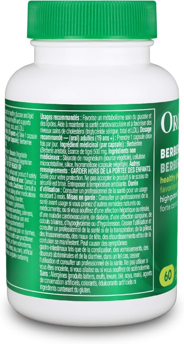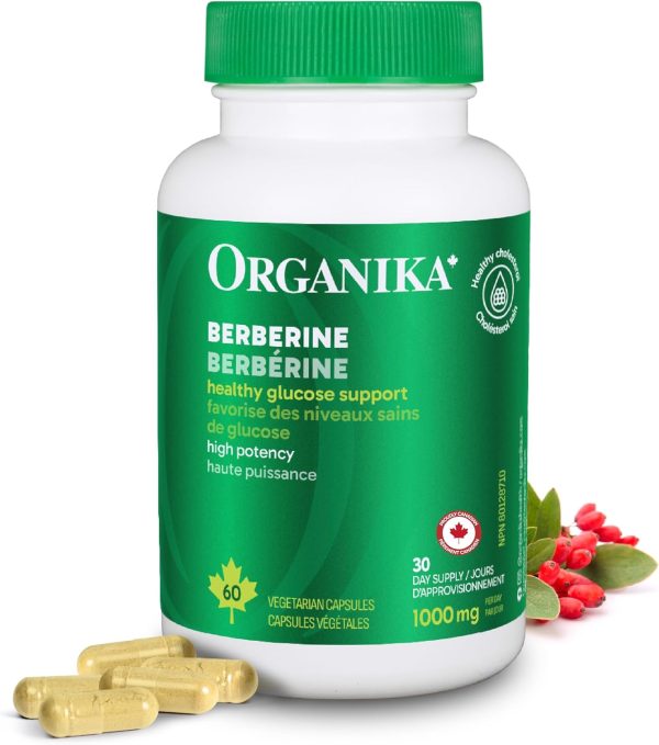 Organika Berberine – High Potency 1000mg per Day, Cholesterol and Glucose Metabolism Support, Helps Maintain Cardiovascular Health – 60vcaps