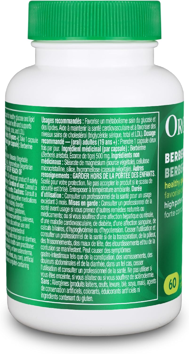 Organika Berberine – High Potency 1000mg per Day, Cholesterol and Glucose Metabolism Support, Helps Maintain Cardiovascular Health – 60vcaps