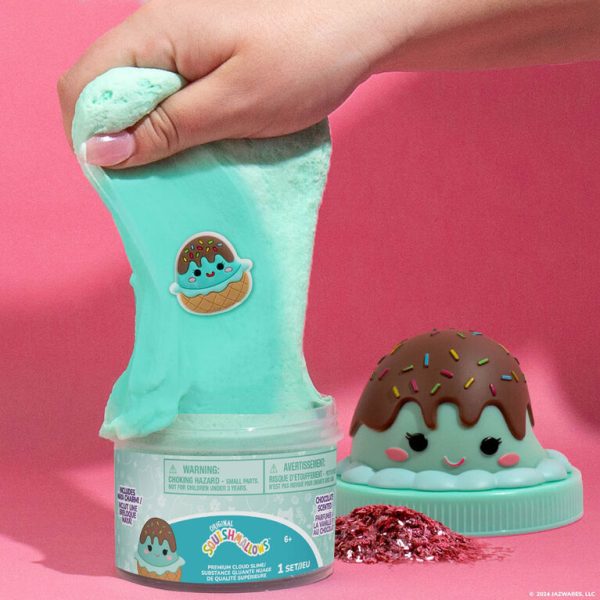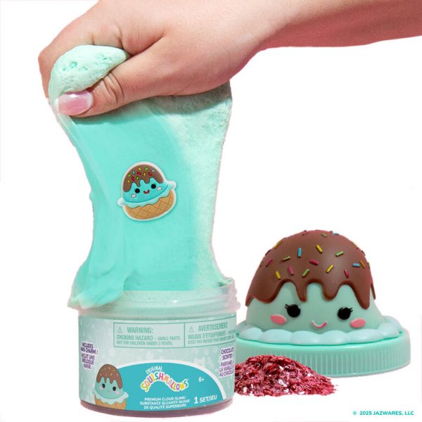 Indulge in a sweet treat for your senses with the Original Squishmallows Maya the Ice Cream Scented Cloud Slime! This resealable jar of fun contains 8 oz. of teal chocolate-scented cloud slime, iridescent pink tinsel, and a rubber charm of your favorite ‘Mallow to chill with, Maya the Ice Cream! Perched atop the lid is Maya herself, ready to sprinkle some joy into your slime play. You can skip the messy mixing and activators – this slime comes pre-made and ready to play! With two different shades of teal, you can stretch, poke, and scoop the colors into a dreamy swirl! Mix in the pink tinsel for a sprinkled ice cream effect, then add the charm for a sensory adventure as cool and sweet as Maya herself! Fold it, twist it, squeeze it then return the slime to its container for More To Squish later! Recommended for any Squishmallows fan ages 6 and up.