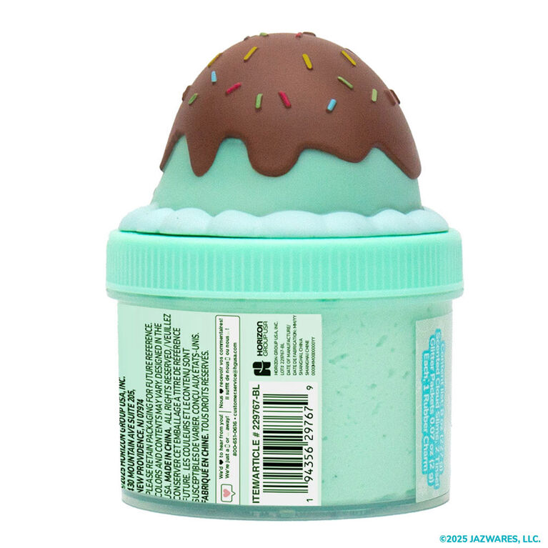 Indulge in a sweet treat for your senses with the Original Squishmallows Maya the Ice Cream Scented Cloud Slime! This resealable jar of fun contains 8 oz. of teal chocolate-scented cloud slime, iridescent pink tinsel, and a rubber charm of your favorite ‘Mallow to chill with, Maya the Ice Cream! Perched atop the lid is Maya herself, ready to sprinkle some joy into your slime play. You can skip the messy mixing and activators – this slime comes pre-made and ready to play! With two different shades of teal, you can stretch, poke, and scoop the colors into a dreamy swirl! Mix in the pink tinsel for a sprinkled ice cream effect, then add the charm for a sensory adventure as cool and sweet as Maya herself! Fold it, twist it, squeeze it then return the slime to its container for More To Squish later! Recommended for any Squishmallows fan ages 6 and up.