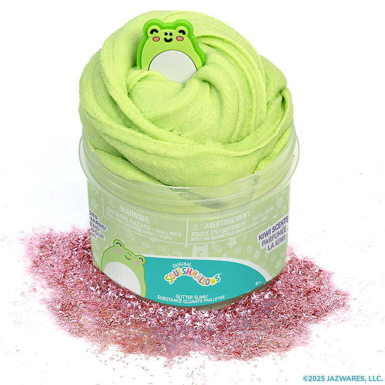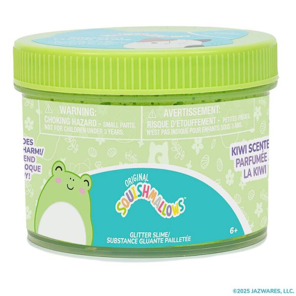 Hop into sensory fun with the Original Squishmallows Wendy the Frog Cloud Slime! This resealable jar of fun contains 8 ounces of fluffy green kiwi-scented cloud slime and a rubber charm of your favorite sporty, science-loving ‘Mallow, Wendy the Frog! This slime comes pre-made and ready to play – no mixing or activators required, just instant squishy fun! Squish, squeeze, and pull it every which way, then add the rubber Wendy charm for a tactile treat. Fold it, poke it, twist it, then return the slime to its container for More To Squish later. Perfect for gift baskets, back-to-school, or just for fun, this slime promises to spark smiles. Recommended for any Squishmallows fan ages 6 and up!