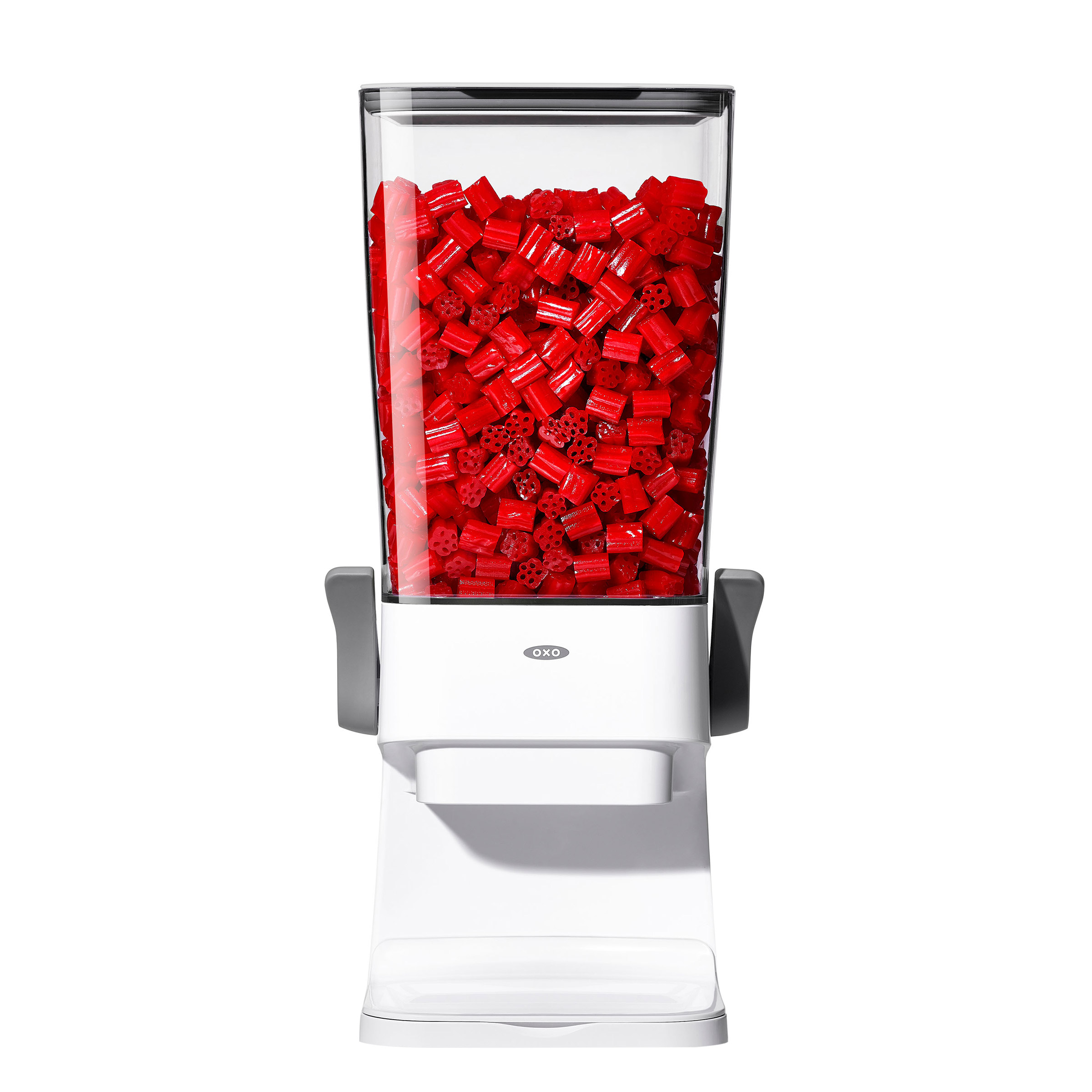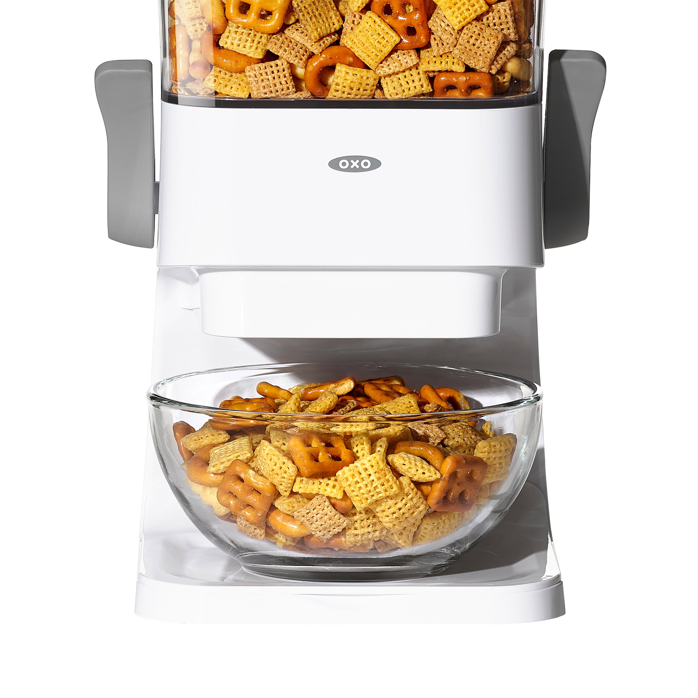 The countertop food dispenser from OXO is ideal for keeping cereals and snacks fresh and handy. The spring-loaded levers allow for controlled, one-handed dispensing while the chute-design opening won't crush food as it dispenses. The large 5.5-liter capacity is great for storing cereal, pretzels, trail mix and even pet food!
