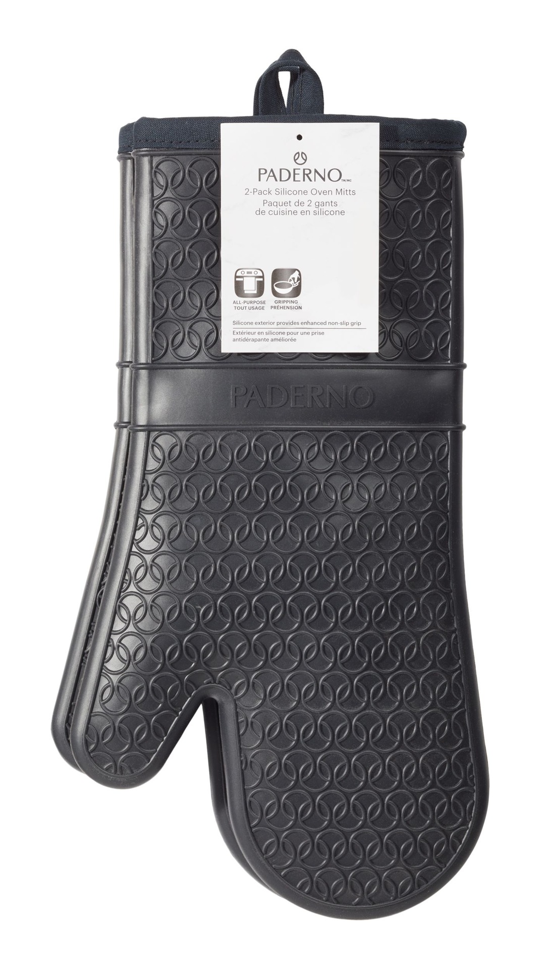 PADERNO All-Purpose Silicone Oven Mitts enable cooks to transfer hot pans and trays comfortably. These heat-resistant oven mitts provide a confident grip and ample protection. Their textured surface ensures a slip-free hold on hot cookware while the flexible silicone shields hands.