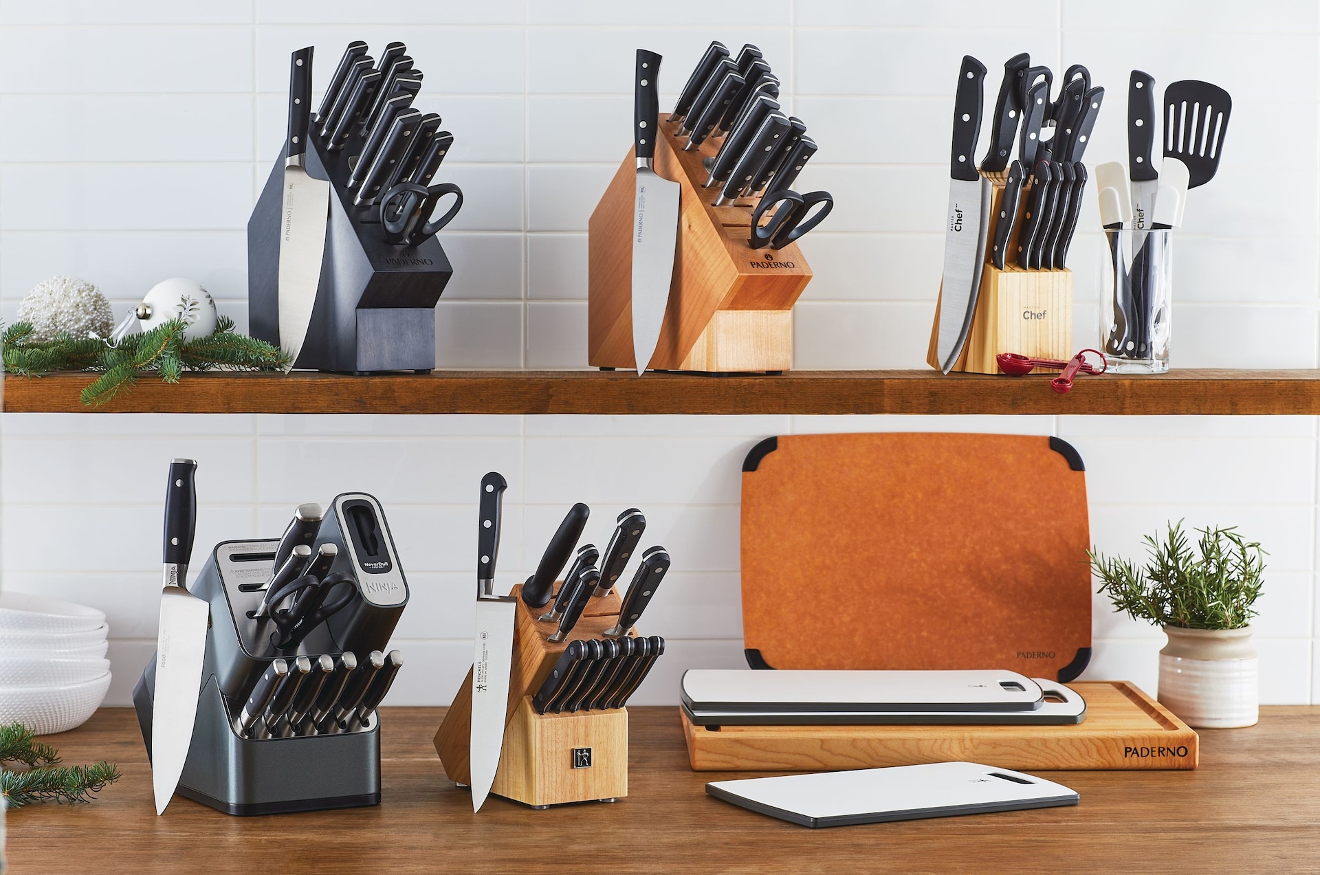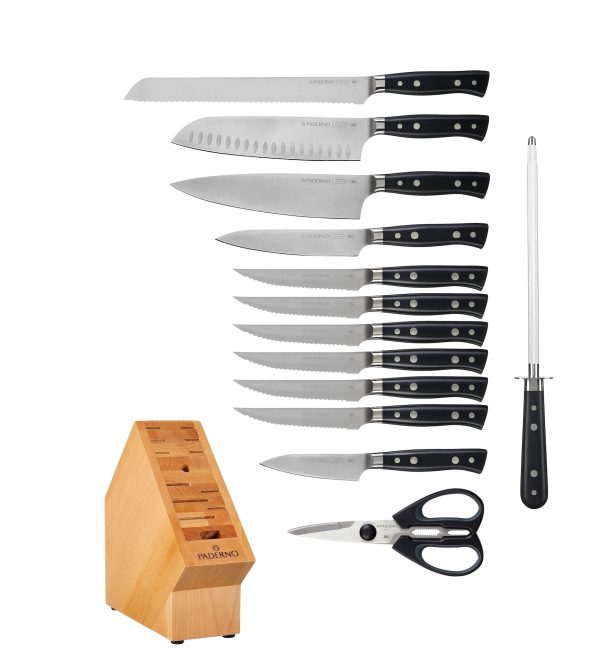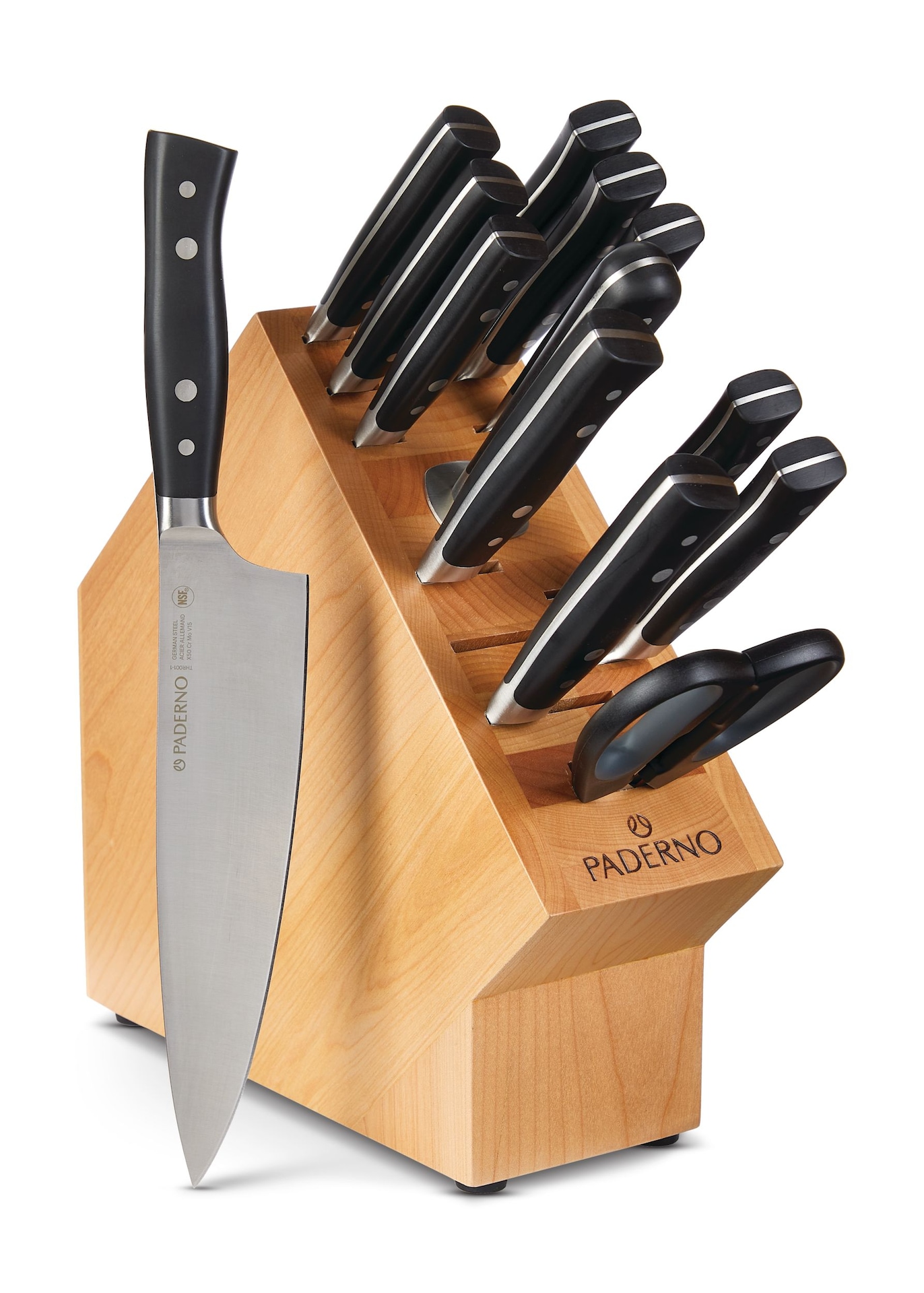 Take the hassle out of everyday cooking and food prep with the PADERNO Montgomery Knife Block Set. This 14-piece set features 11 precision-forged knives, sharpening steel and versatile kitchen scissors, all housed in an elegant wooden block for easy storage and display. Each knife is crafted with ergonomic handles, offering comfort and control for seamless meal prep. Designed for long-lasting sharpness and exceptional cutting precision, the PADERNO Montgomery Knife Block Set equips you with the tools to handle every culinary task like a pro.
