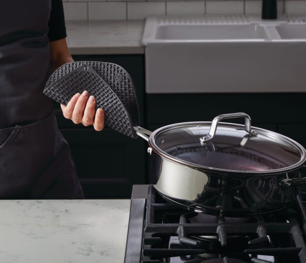 The PADERNO Silicone Pot Holder provides exceptional protection when handling hot cookware or bakeware. It is constructed with a heat-resistant food-grade silicone material that is flexible and easy to wash. The pot holder has a non-slip textured pattern that easily wraps around any surface to provide a secure grip. PADERNO’s durable non-slip pot holder is oven-safe up to 446°F (230°C) and dishwasher-safe. Proudly designed in Canada.