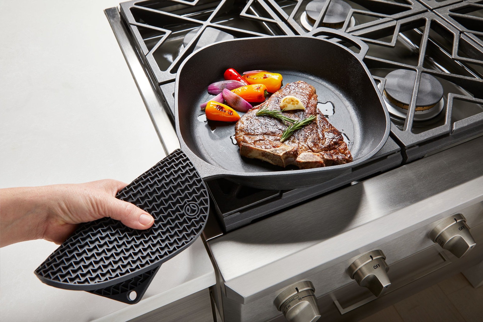 The PADERNO Silicone Pot Holder provides exceptional protection when handling hot cookware or bakeware. It is constructed with a heat-resistant food-grade silicone material that is flexible and easy to wash. The pot holder has a non-slip textured pattern that easily wraps around any surface to provide a secure grip. PADERNO’s durable non-slip pot holder is oven-safe up to 446°F (230°C) and dishwasher-safe. Proudly designed in Canada.