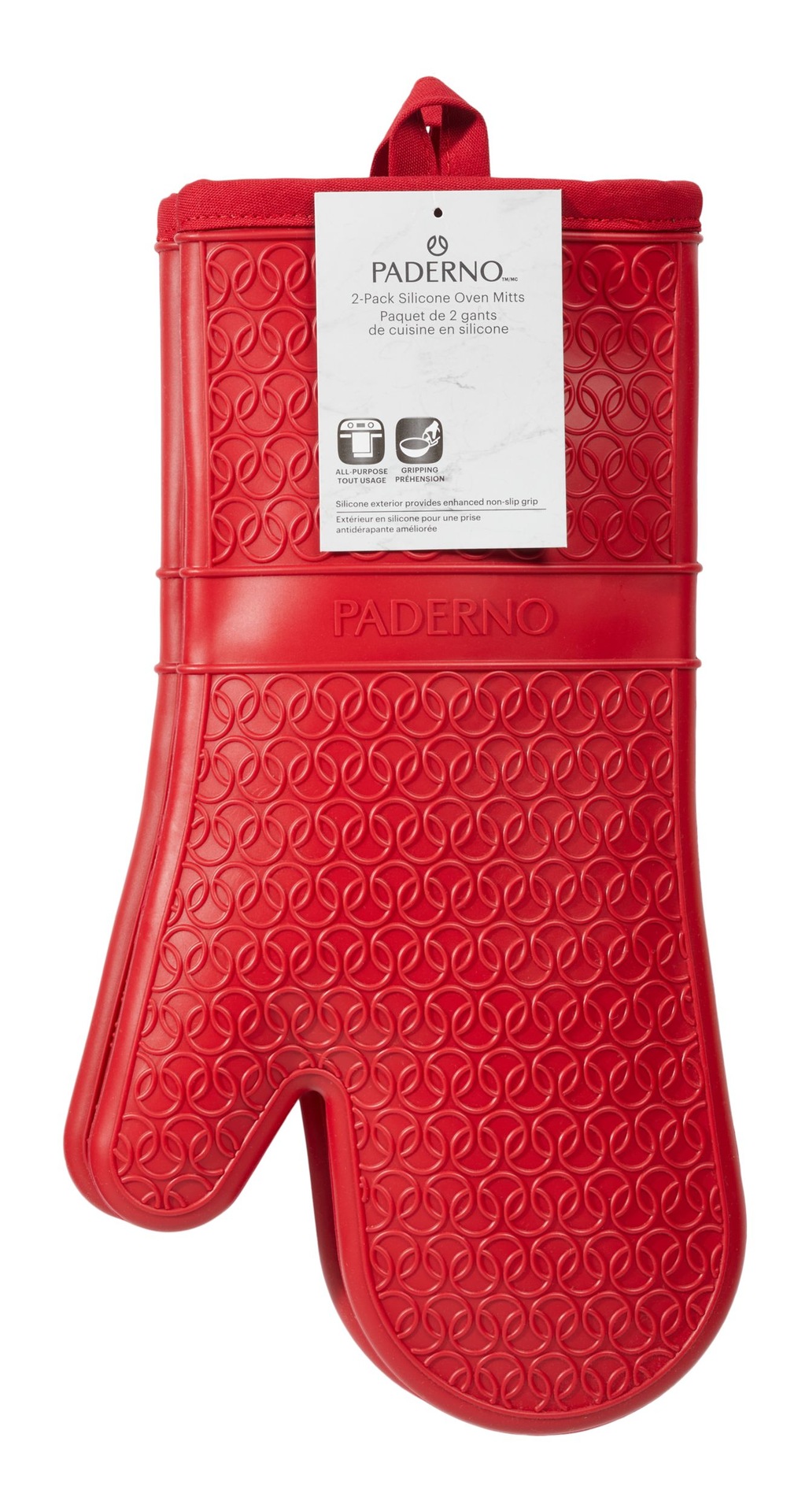 PADERNO Washable Silicone Oven Mitts are ready for any baking adventure. Made of heat-resistant silicone, these kitchen mitts are perfectly designed to handle hot pans, baking sheets, and more The non-slip grip keeps them firmly in hand even when things heat up in the kitchen, while the convenient hanging loop makes storage a breeze. Best of all, they’re machine washable for easy cleaning.