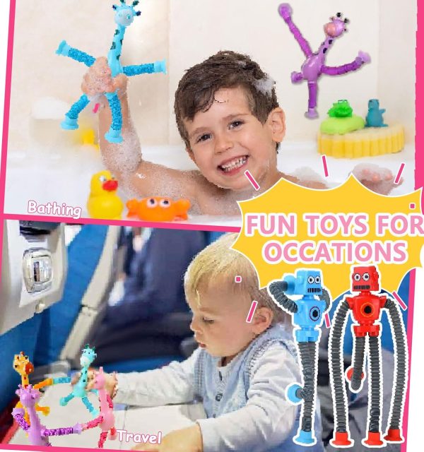 Pop Tubes Robot Toys 4 Packs Christmas Stocking Stuffers for Kids Boys Girls Fidget Toys Suction Cup Sensory Toys for Toddler Travel Essentials Party Favors