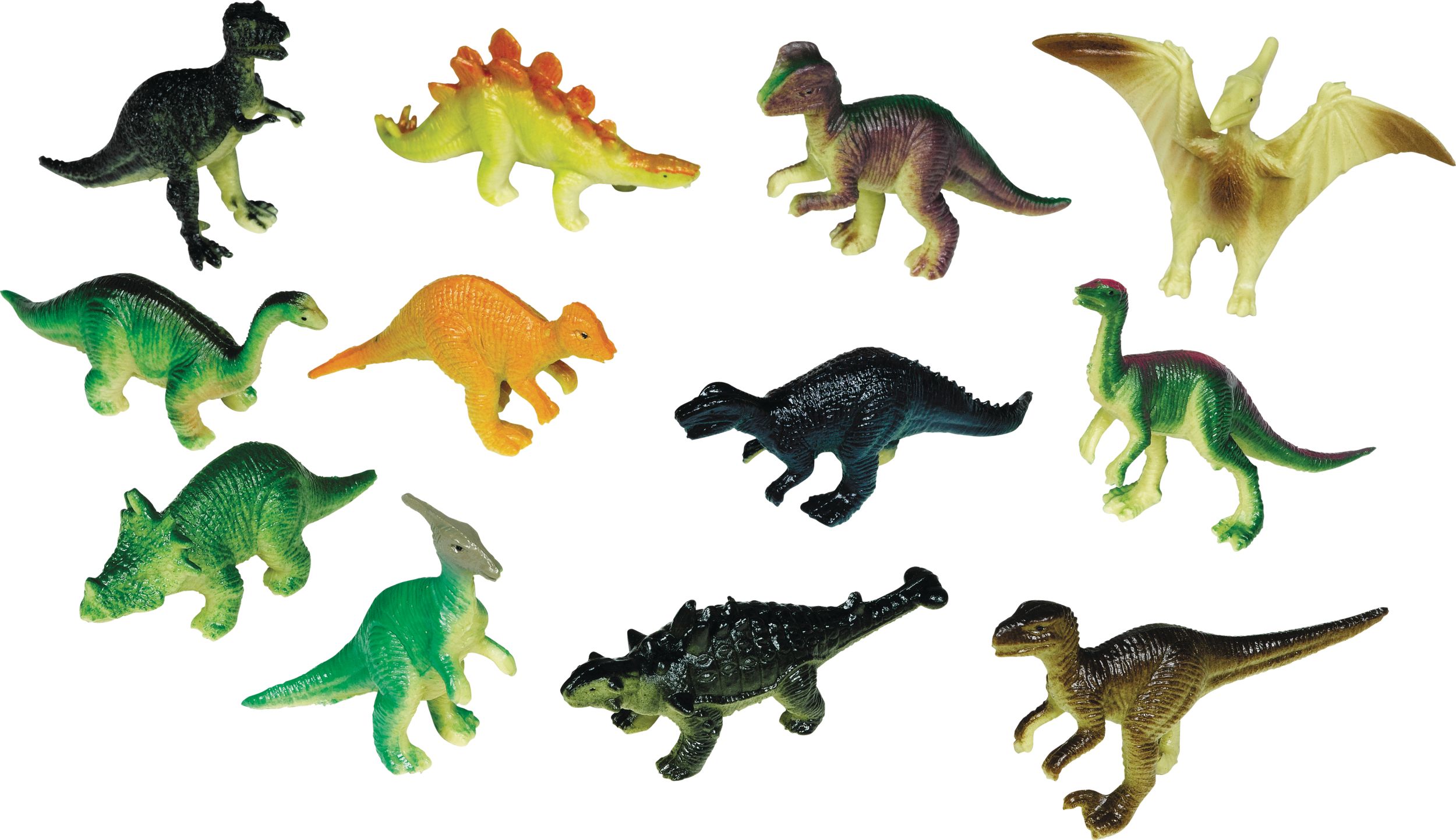 Toy Prehistoric Dinosaurs, 36-pk are mighty minis for tiny tyrannosauruses. They may be small but will bring gigantic fun for the paleontologist inside your child. No need for dental floss at playtime with these miniature prehistoric pals – just roars of delight and hours of imagination. Perfect for tucking into gift bags and treat bags alike.