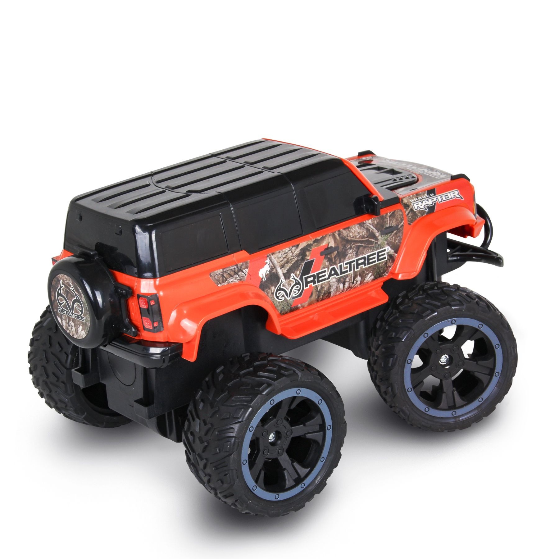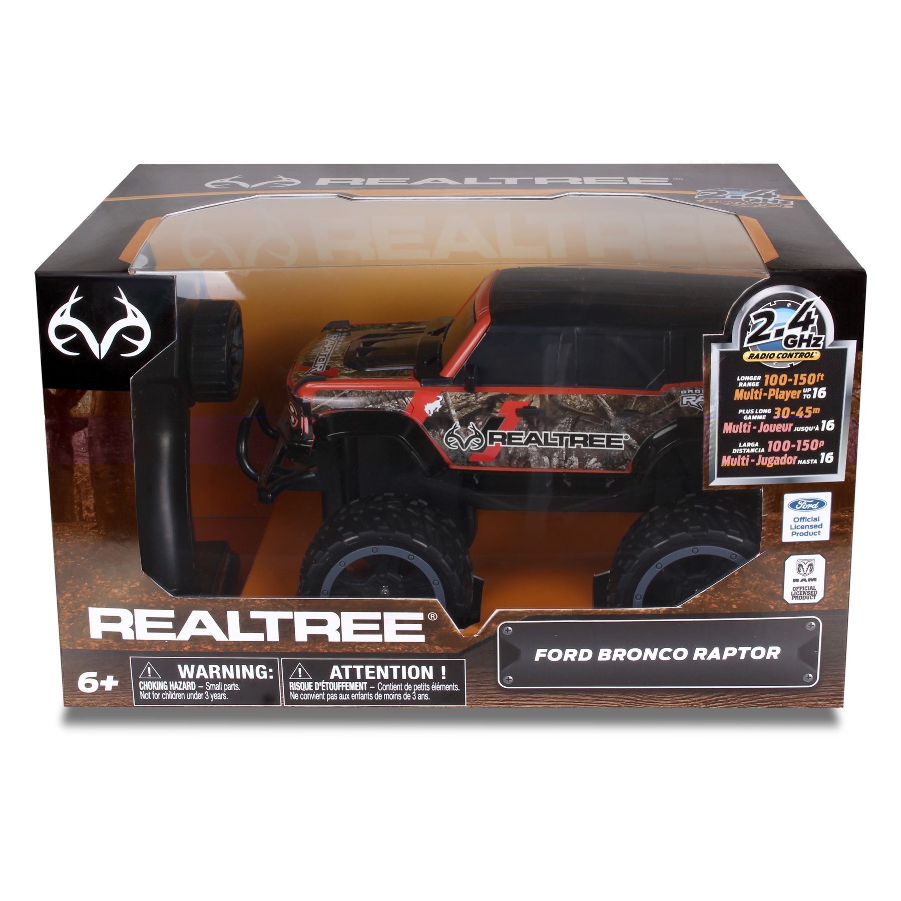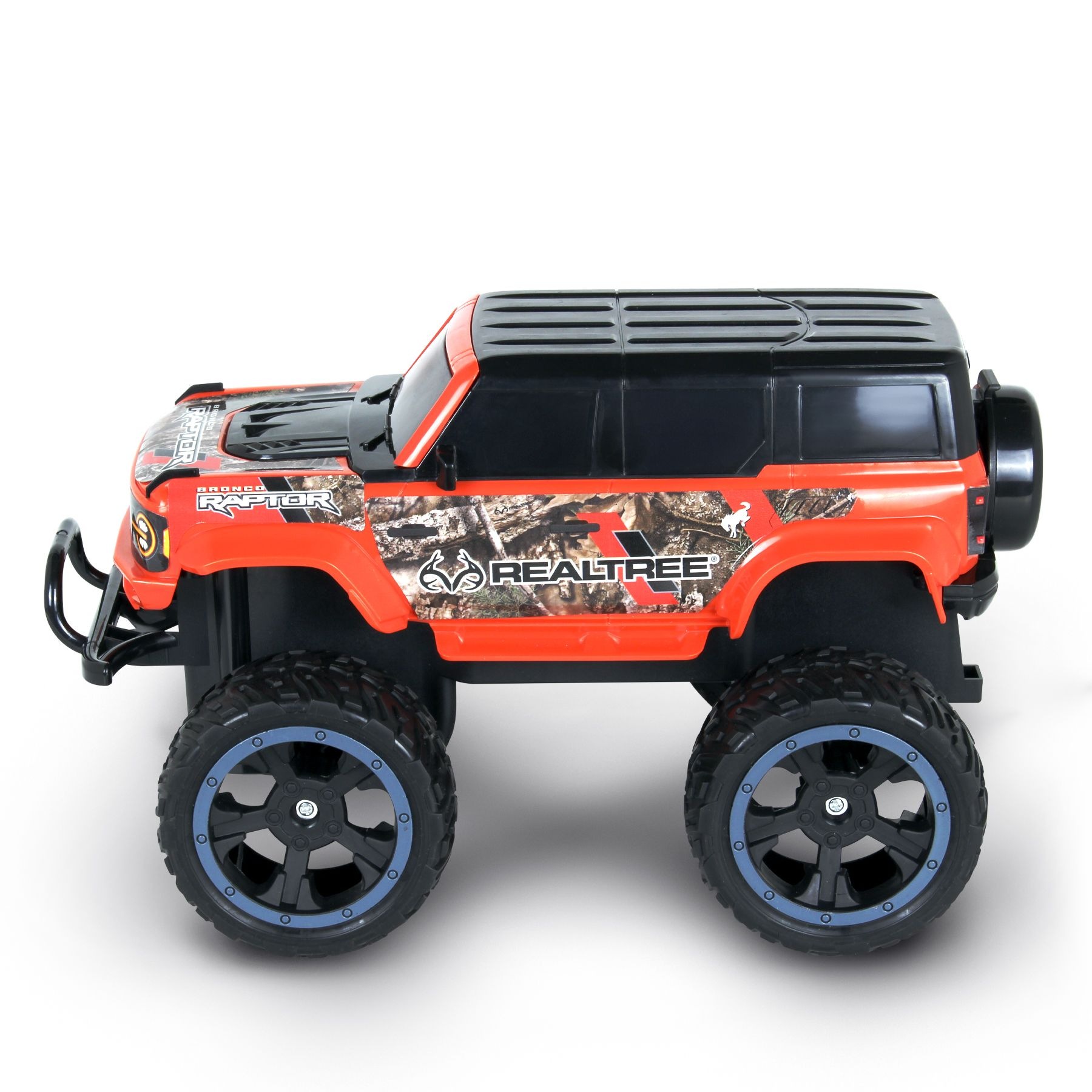 Experience the thrill of off-road adventures with the Realtree Ford Bronco Orange Raptor RC Car. This scaled-down version of the iconic Ford Bronco Raptor features a rugged design and authentic Realtree camouflage pattern, making it perfect for enthusiasts and collectors alike. With its powerful stance and sleek lines, this RC car is ready to conquer any terrain.