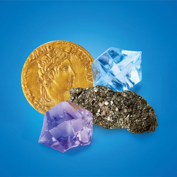 4 TREASURES TO DISCOVER: Unearth a collection of 4 surprises hidden inside – 2 gemstones, 1 pyrite nugget, and 1 replica gold coin, providing an exciting variety for budding archaeologists.