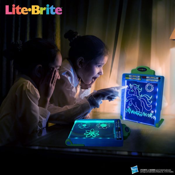 The next gen of Lite Brite fun gets a glow-up! Nostalgic Lite Brite toys are brought to the 21st Century with Glow Flow gel pens to create the ultimate creative glow experience and different modes of play. With different modes of play, the new edition of Lite Brite drawing boards are perfect for on-the-go adventures and at-home drawing sessions.
