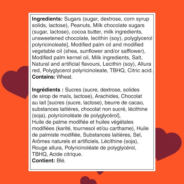 - Peanut butter and milk chocolate with red velvet flavored creme, individually wrapped in festive packaging