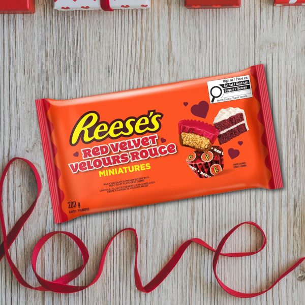 - Contains one (1) 200g bag of REESE'S Miniatures Red Velvet Flavored Peanut Butter Cups Candy