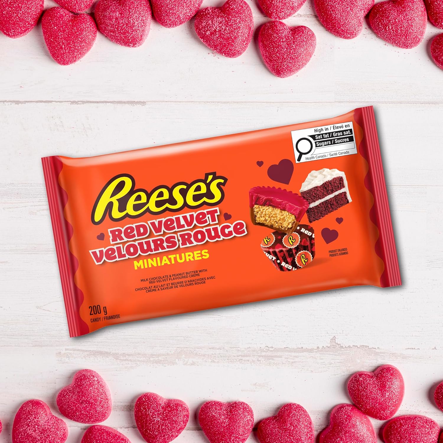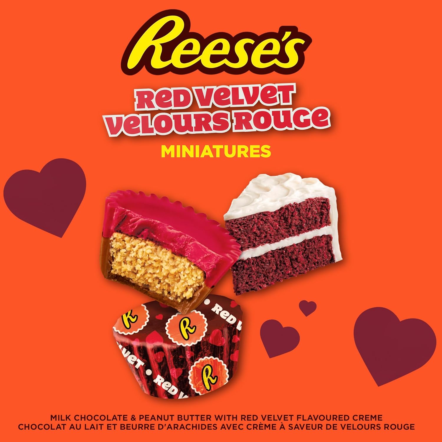 - Contains one (1) 200g bag of REESE'S Miniatures Red Velvet Flavored Peanut Butter Cups Candy
