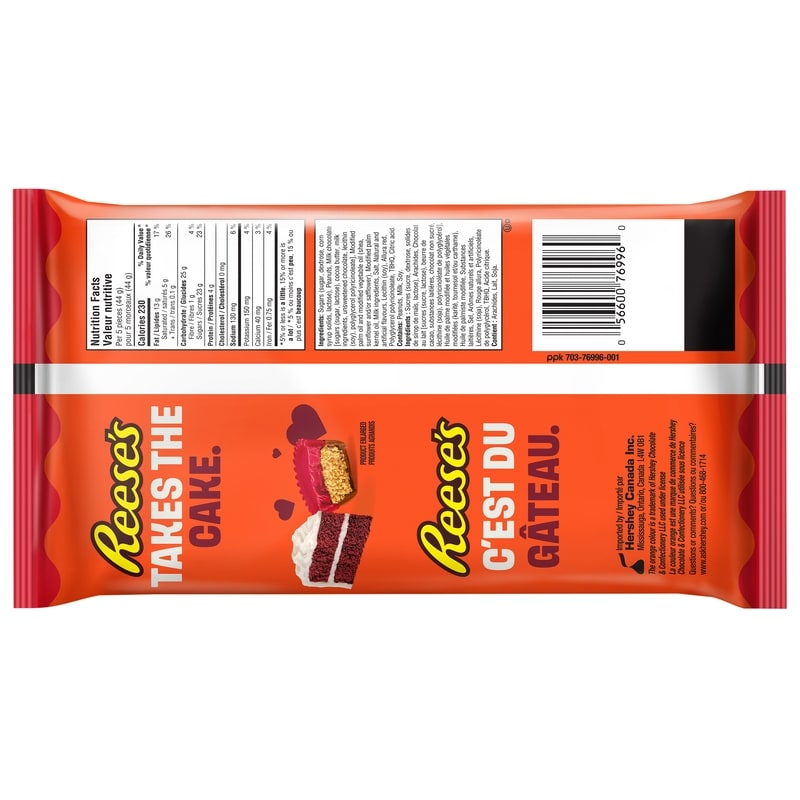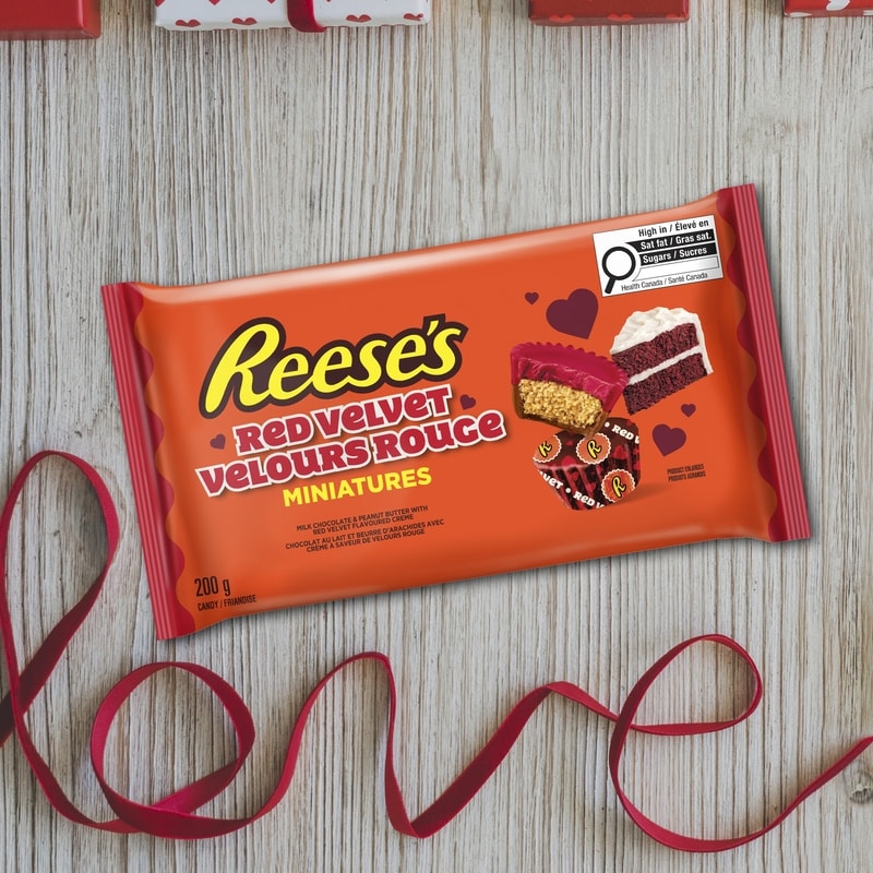 Whether you’re filling Valentine’s day candy dishes or gift bags, there’s never been a better reason to get lost in the taste of smooth peanut butter and rich milk chocolate of a REESE’S candy, now topped with red velvet flavored creme. Each red velvet flavored sweet in this bag provides the perfect helping of festive fun to treat the taste buds of your favorite candy lover!