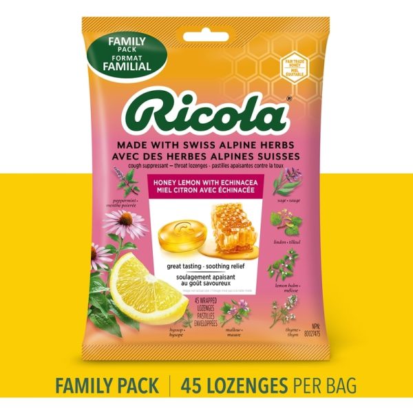 Ricola Honey Lemon with Echinacea cough drops help soothe your cough and sore throat. The please taste of these Ricola cough drops comes from real golden honey with refreshing herbal lemon balm and Echinacea from the Swiss Mountains. For nearly a century, Ricola has been helping throats around the world feel better. World-famous Ricola cough drops are made with 10 high-quality herbs grown high in the Swiss mountains, each with uniquely distinct traits. Ricola helps support you with soothing cough relief and sore throat relief.