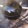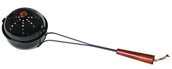 The round shape of the big bowl popcorn popper is made for serious popcorn action. The hinged lid works like a charm and will cook up to 3 quarts of popcorn at a time. All steel construction features a BBQ grade baked enamel cooking surface. Solid wood handle stays cool when cooking over a campfire or hearth.