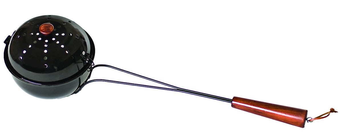 The round shape of the big bowl popcorn popper is made for serious popcorn action. The hinged lid works like a charm and will cook up to 3 quarts of popcorn at a time. All steel construction features a BBQ grade baked enamel cooking surface. Solid wood handle stays cool when cooking over a campfire or hearth.