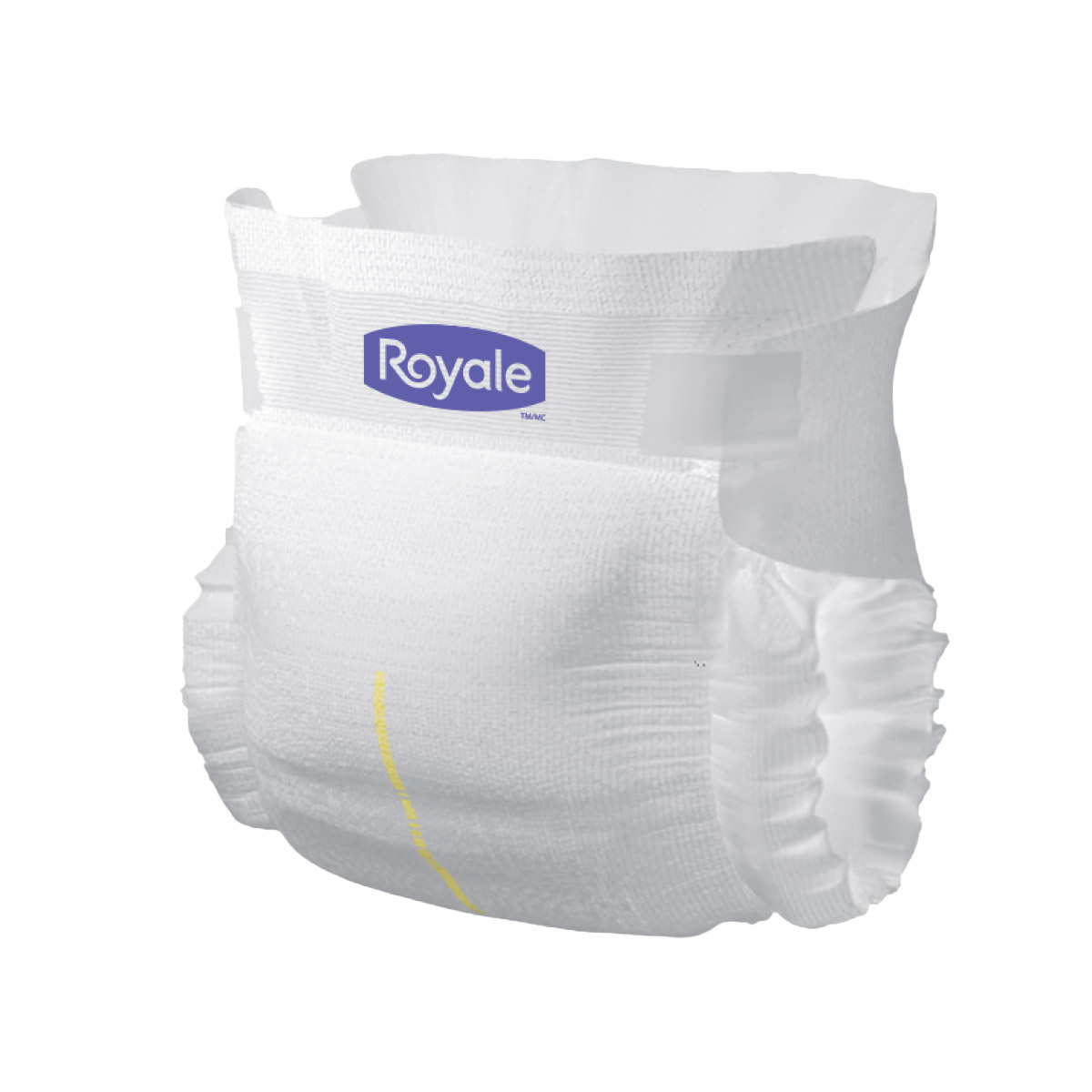 - The built-in wetness indicator strip on Royale premium diapers changes colour to indicate when it’s time to change the baby.