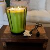 - Frazier Fir fragrance with high notes of raspberry, apple, and orange zest, middle notes of fir needles, camphor, and maple, and base notes of cedarwood, sandalwood, and musks in an olive green glossy vessel