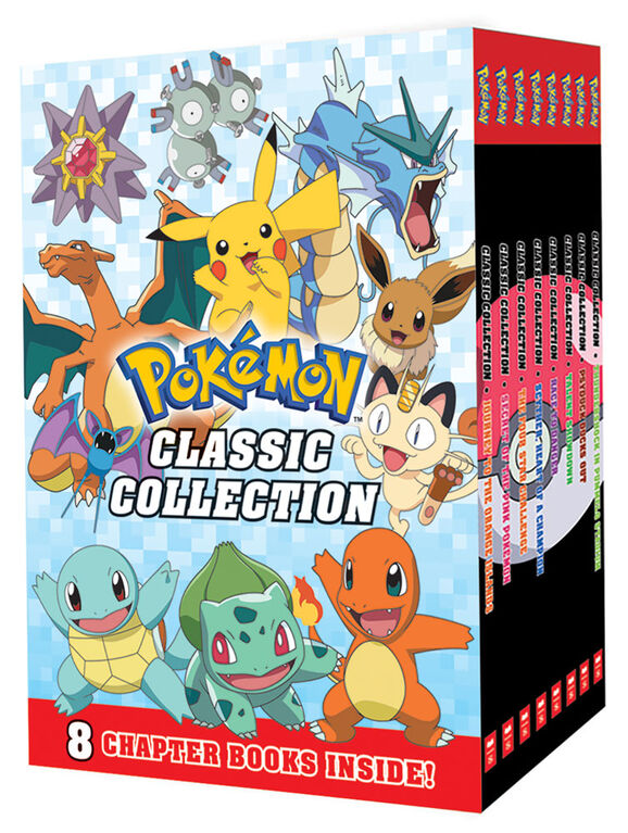 Discover the original adventures of Ash and his loyal Pikachu in this classic chapter book collection! These characters can be found in Pokemon GO and the classic animated series on Netflix.This boxed set includes paperback reissue editions of the following eight Pokémon titles:THE FOUR-STAR CHALLENGEJOURNEY TO THE ORANGE ISLANDSPSYDUCK DUCKS OUTRACE TO DANGERSCYTHER, HEART OF A CHAMPIONSECRET OF THE PINK POKéMONTALENT SHOWDOWNTHUNDERSHOCK IN PUMMELO STADIUM