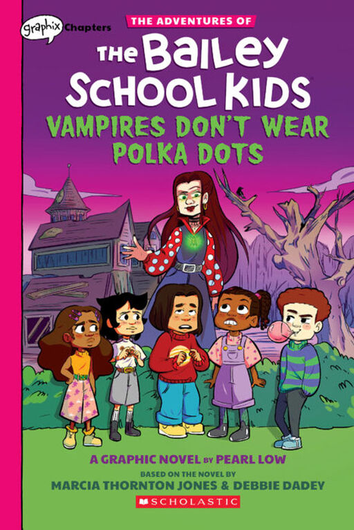 Featuring a beloved story by Debbie Dadey and Marcia Thornton Jones and fresh, funny artwork by Academy Award winner Pearl Low, Vampires Don’t Wear Polka Dots brings the Bailey School Kids into the graphic novel format for the first time.