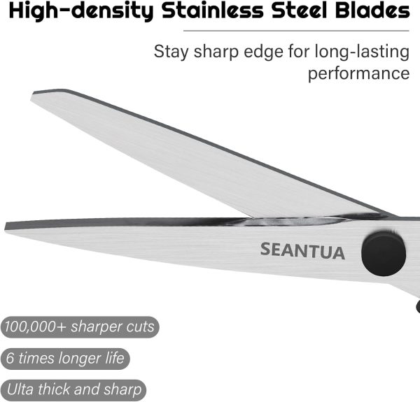 - [Durable and Sharp Blades]: The blades of scissors are made of high-density steel that makes 3 times harder than normal stainless steel. This allows our scissors to stay sharp beyond 100,000 cuts.
