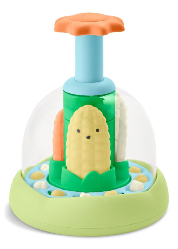 The Skip Hop Farmstand Push & Spin Popper Baby Learning Toy introduces a delightful twist to baby entertainment. Designed for ages 6 months and up, this toy captures attention with its dynamic corn cob motion and lively popcorn effects. As babies press the sun, they activate the spinning, bobbing, and popping features, engaging with auditory and visual stimulation. This activity encourages the development of fine motor skills and teaches cause and effect.