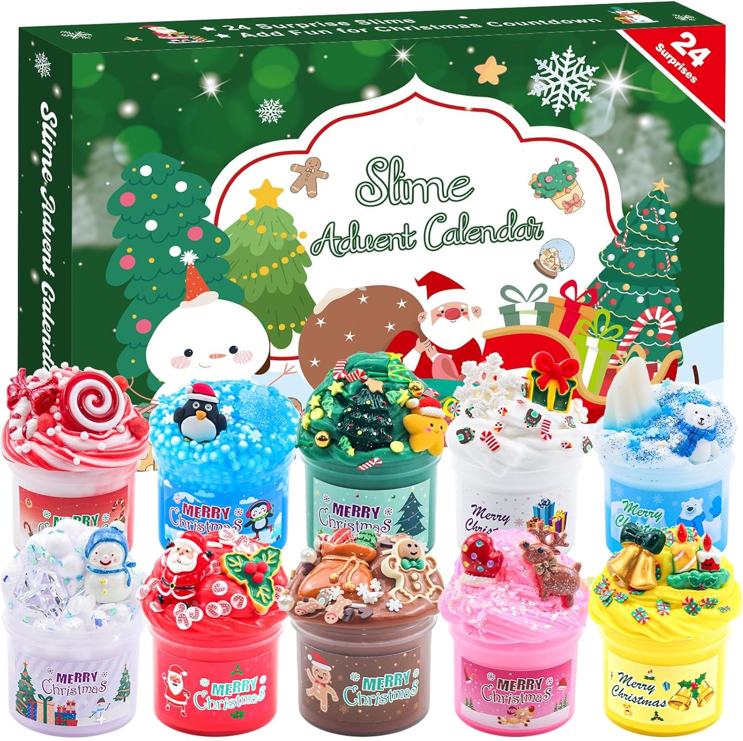 - 24 Surprises to Discover: The set includes 10 scented fluffy slimes and 14 accessories (Christmas toy molds, animals, and candy slices). The advent calendar offers a fun and collectible surprise every day for 24 days