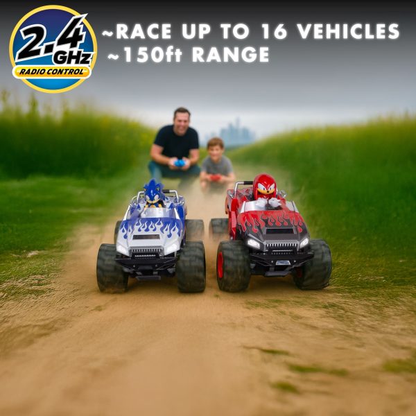 Get ready for high-speed thrills with the Sonic and Knuckles Monster Trucks, each sold individually. These high-performance trucks are built for action, with powerful motors and rugged wheels designed to tackle any terrain. With Sonic’s iconic speed and Knuckles’ strength, each truck brings its own unique flair to the race track. The vibrant designs and detailed figures make them stand out as they race, flip, and roll over obstacles. Whether you’re battling for first place or showing off your monster truck stunts, these trucks are sure to provide hours of fun and excitement. Collect them both for double the action. Equipped with a high-powered motor and rugged wheels, these monster trucks are ready to tackle any terrain with ease. Each truck features vibrant, detailed designs showcasing Sonic’s speed and Knuckles’ strength, bringing your favourite characters to life. These trucks come fully assembled and ready for immediate action, so you can dive right into the fun without any setup needed. Built for durability, these trucks are designed to withstand intense play, making them perfect for both indoor and outdoor stunts. With their high-performance wheels and shock absorption, these trucks are perfect for performing epic jumps, flips, and tricks during races and stunts.