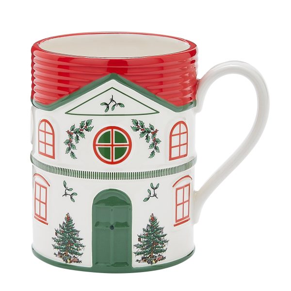 Spode Christmas Tree Collection, Christmas Village Mug & Tidbit Tray Set, 4-piece Red