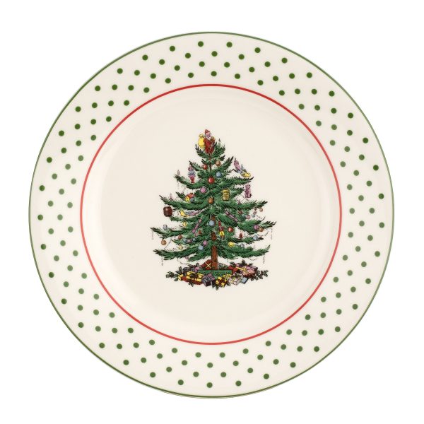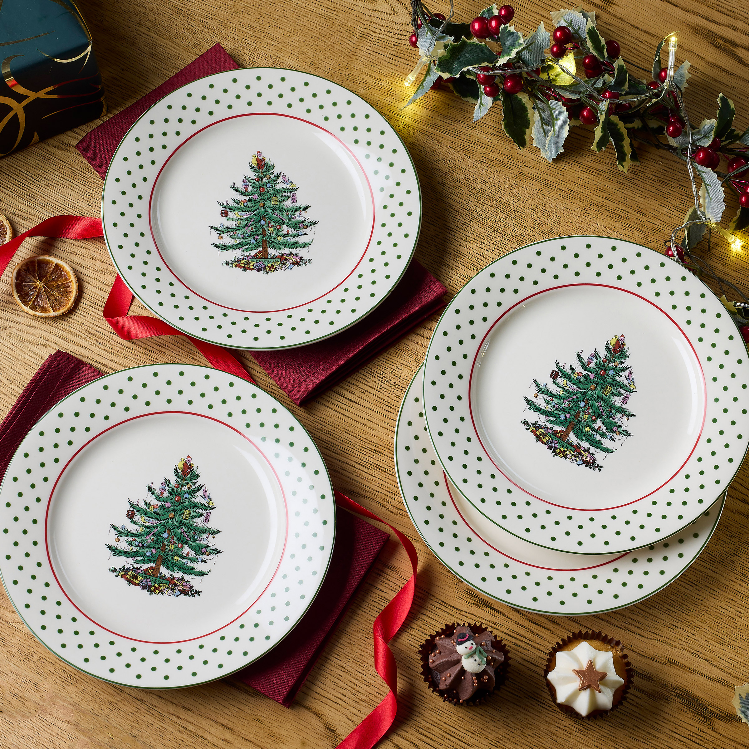 The Christmas Tree Polka Dot Collection features a playful polka dot border surrounding our iconic Spode Christmas Tree. A whimsical dessert set to add cheer to the holidays. This Christmas Tree Polka Dot Set of Dessert Plates will bring a whimsical touch to holiday entertaining. The 8 inch plate is perfect for desserts and snacks or to layer onto Spode Christmas Tree for a fresh update.
