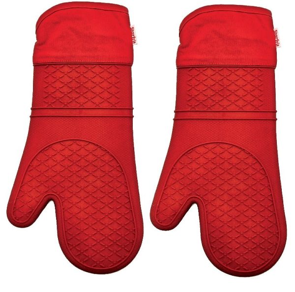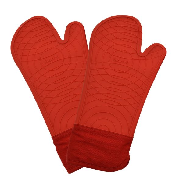 Introducing the new waterproof Starfrit silicone cooking mitts. These mitts are the only ones on the market that protect you from both boiling water and oil. The non-slip design includes reinforcement near the thumb for a better grip, even when the mitts are humid. And the durable silicone material won’t deteriorate or stain on contact with heat. The non-porous design provides superior hygiene, and when it’s time to clean your oven mitts, simply use warm soapy water and a damp cloth.