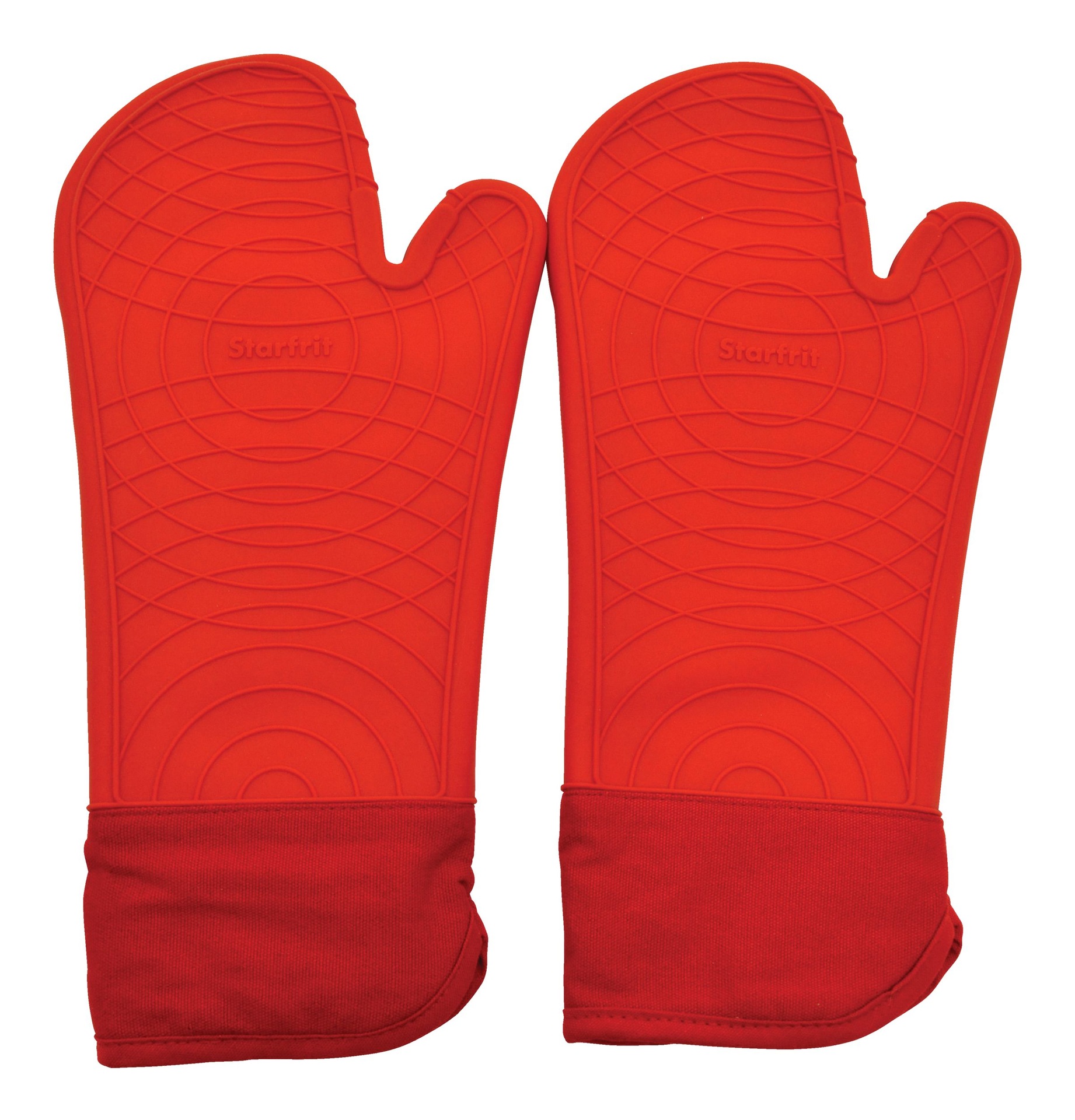 Introducing the new waterproof Starfrit silicone cooking mitts. These mitts are the only ones on the market that protect you from both boiling water and oil. The non-slip design includes reinforcement near the thumb for a better grip, even when the mitts are humid. And the durable silicone material won’t deteriorate or stain on contact with heat. The non-porous design provides superior hygiene, and when it’s time to clean your oven mitts, simply use warm soapy water and a damp cloth.