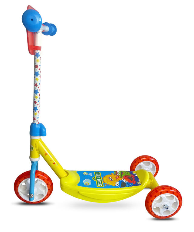 Unique, only available at our store. Join the Sesame Street team for an adventure on this 3 wheel scooter! This Sesame Street 3 Wheel Scooter is perfect for new riders. The deck is wide for added support on balance and foot grip. It has rubber grips for better gripping power and PVC wheels for a smoother ride. This scooter is perfect for smooth surfaces and parks!