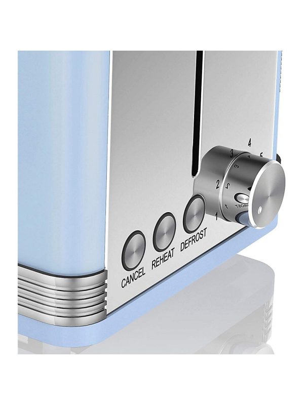 the 2 slice retro toaster comes with an adjustable knob for 6 levels of browning to help you make the perfect slice of toast and a slide out crumb tray to help keep your kitchen clean.