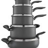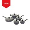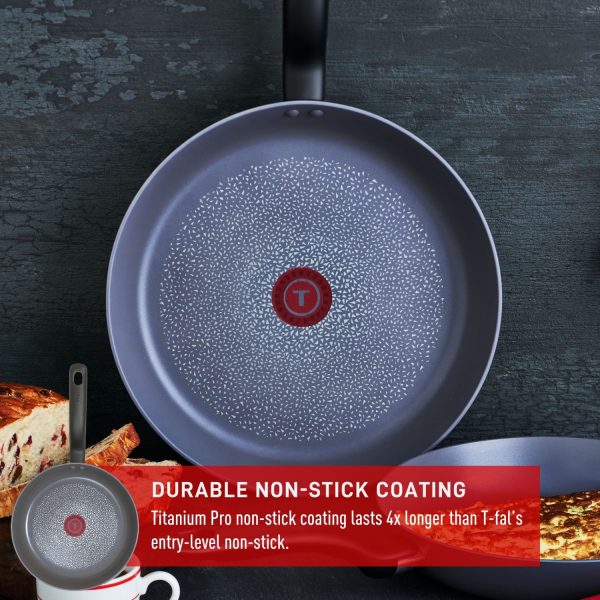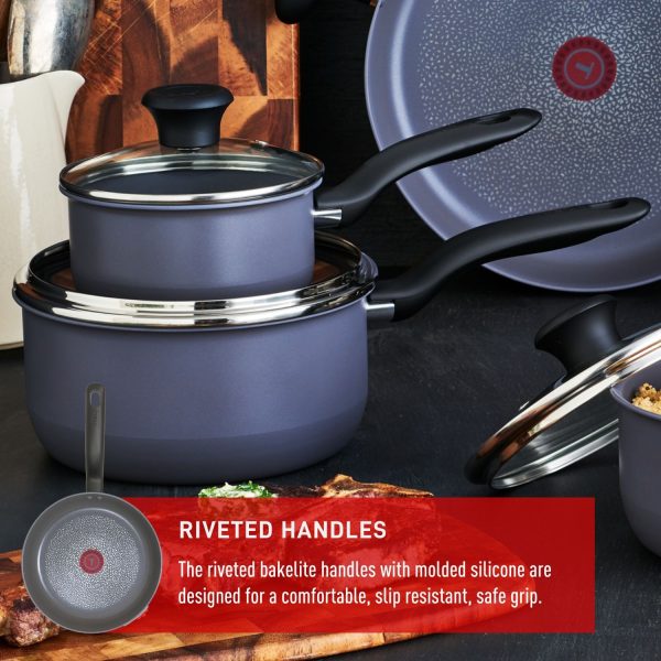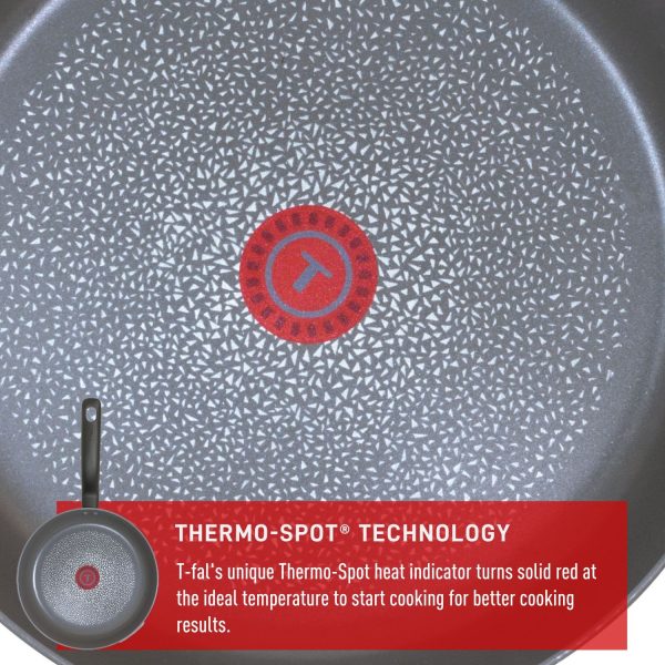 Attractive and hardworking, the T-fal Hard Titanium Cookware Set is a great addition to your kitchen. The Titanium Pro non-stick coating lasts four times longer than traditional non-stick coatings, stands up to daily use, and cleans up in a snap. The set features T-fal’s unique Thermo-Spot® technology that indicates ideal cooking temperature for better results. The cookware set includes all the essential products and sizes to meet your daily cooking needs.