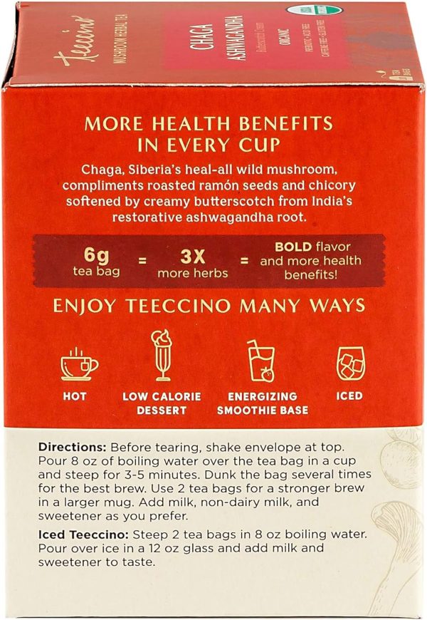 - 3X MORE HERBS – For maximum wellness in your cup, enjoy 300mg of chaga mushroom extract with 600mg of ashwagandha plus 4g more of healthy herbs. Compare to other brands’ tea bags with 1-2g.