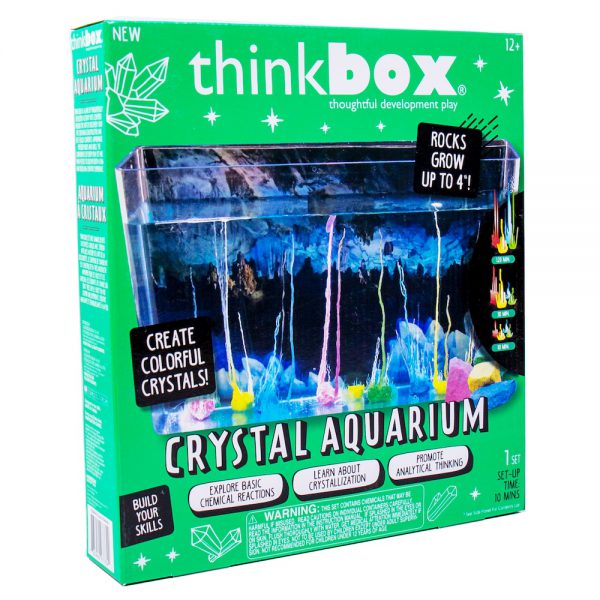 Explore simple reactions that result in gorgeous crystal formations with the Thinkbox Crystal Aquarium! Decorate and personalize the see-through aquarium with a fun graphic background and decals, then combine the crystal growing solution and crystal growing seeds. Watch as the crystals grow before your very eyes! Learn the science behind crystal formations as you observe this hands-on activity. Recommended for scientists 12 and up.