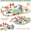 - 110PCS All-in-One Wooden Train Set Perfect for Family & Party Time: This 110-piece set comes with wooden train tracks, scenario building blocks, and puzzles.This large-scale train set is appropriate for children aged 3 to 8, allowing them to experiment with various assembly method and enjoy a range of play options while fostering teamwork for up to three children. It is also the finest option for a fun family time.