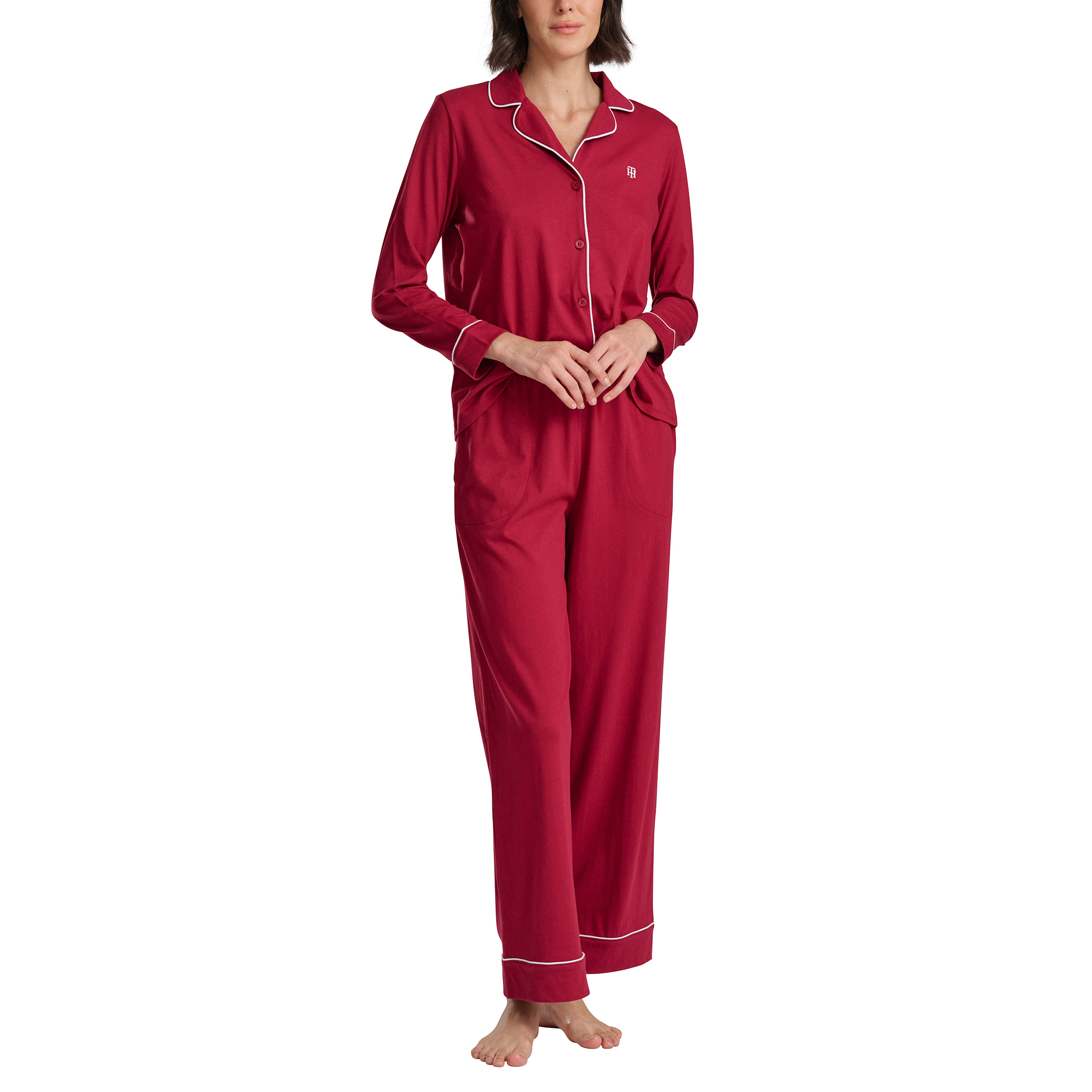 - Notch collar long sleeve top with embroidered logo