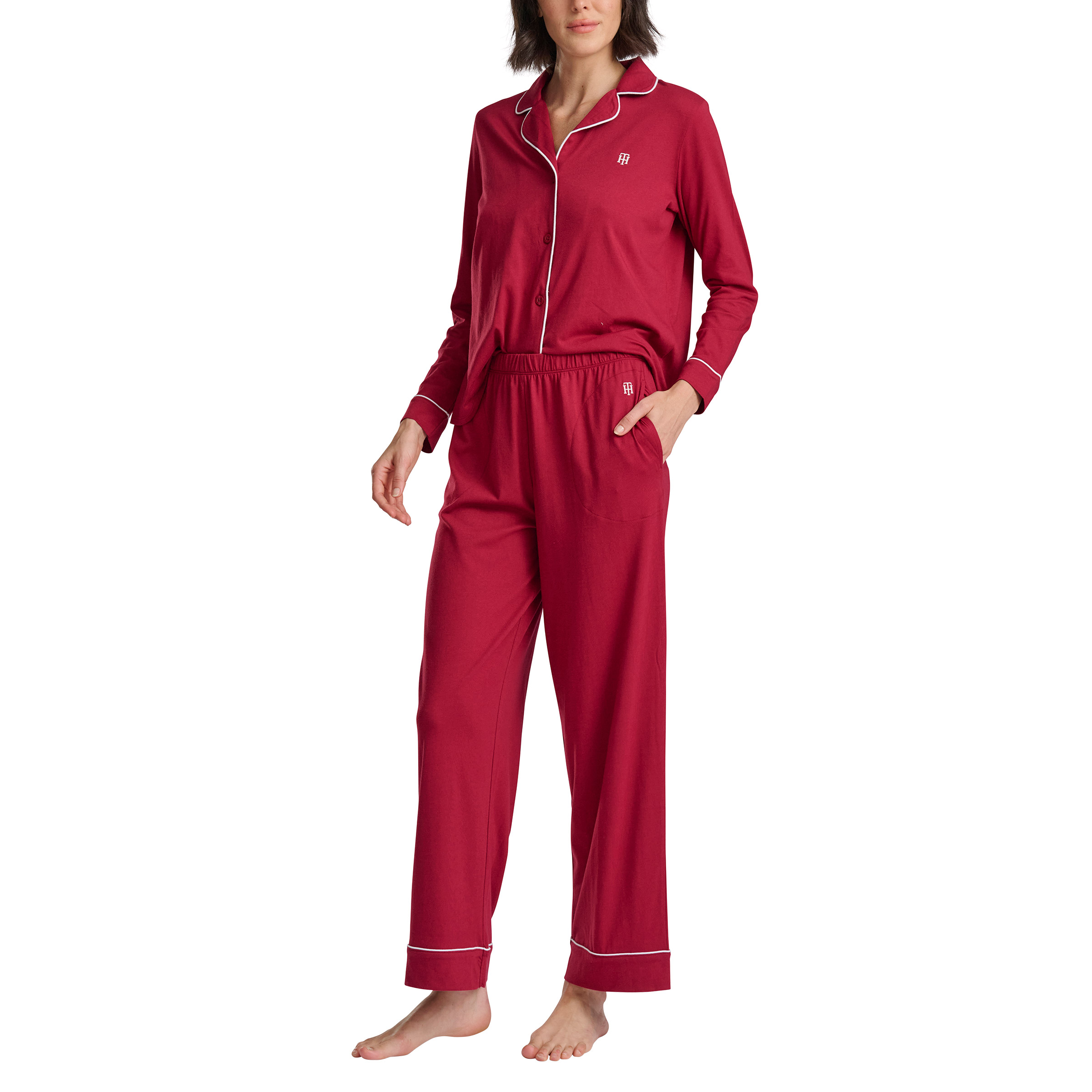 - Notch collar long sleeve top with embroidered logo