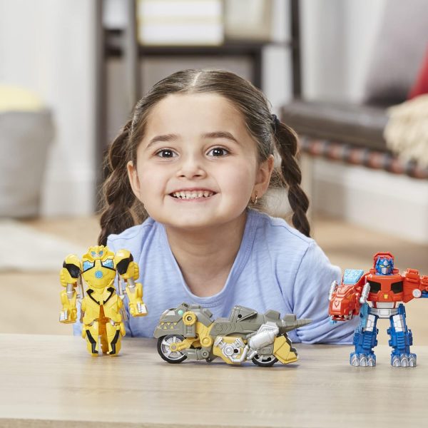 - 2-in-1 toys: little heroes can enjoy twice the fun with 2 play modes, converting the optimus prime figure from robot to t rex mode, bumblebee figure from robot to velociraptor mode, and grimlock figure from t rex to motorcycle mode and back again