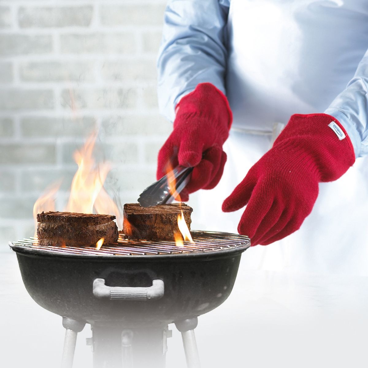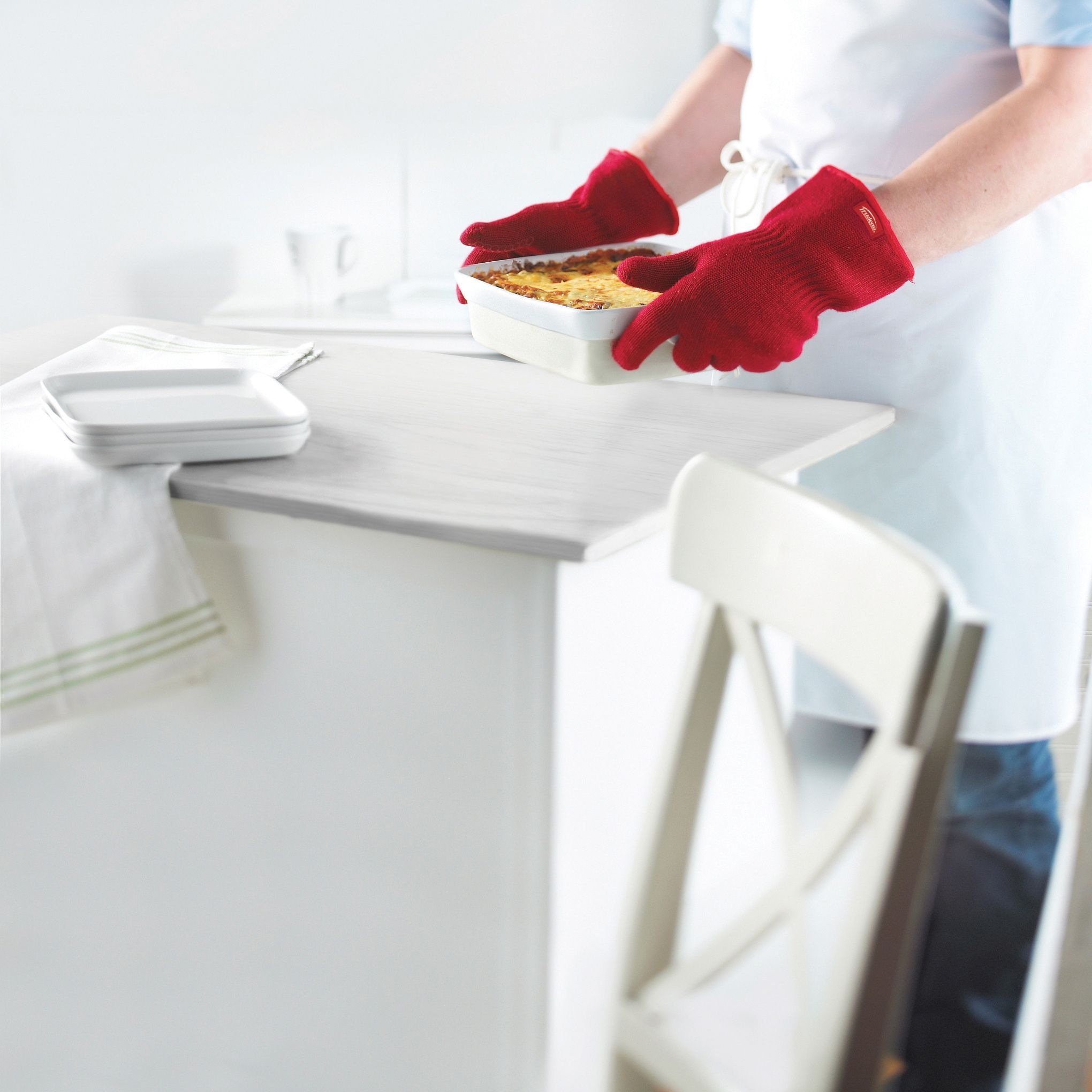 These Trudeau Maison oven gloves protect your most important cooking tools — your hands. Constructed with aramid synthetic fibers, this oven glove set resists temperatures up to 220 degrees Celsius (428°F), shielding your hands and wrists from burners and hot trays. With silicone non-slip grips, these heat-resistant cooking gloves allow you to handle hot pans and dishes with fingertip control, and work the grill with confidence.