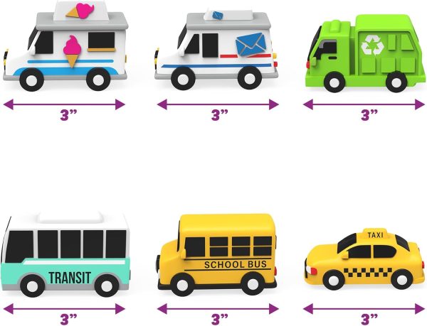 - CITY VEHICLES 6 PACK: Set includes (6) exclusive Mold Free Bath Toys featuring fun car bath toys – Mail Truck, School Bus, Ice Cream Truck, Taxi, City Bus & Garbage Truck – must-have toddler car toys!