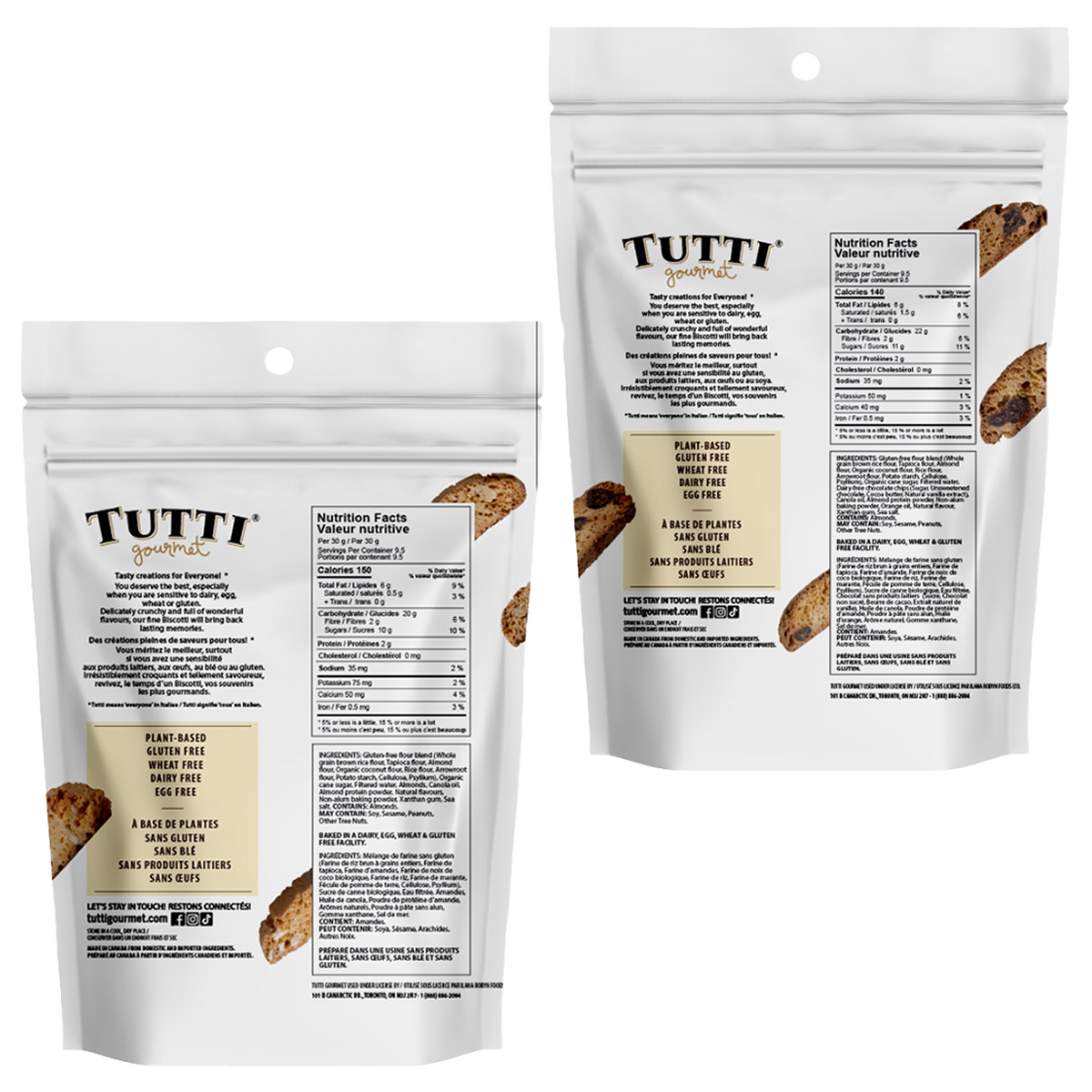 Bursting with rich almonds and crafted from clean ingredients, Tutti Gourmet’s Almond Biscotti is handmade in small batches and toasted to perfection. Thinly sliced and full of aroma, it’s the perfect pairing for coffee, sweet wines, or your favourite beverage. Tutti Gourmet’s Orange Chocolate Biscotti blends the smooth taste of chocolate with a bright hint of orange. Made in small batches with clean ingredients and toasted to perfection, these delicate, thin slices are full of flavour and ideal with coffee, sweet wines, or your drink of choice.