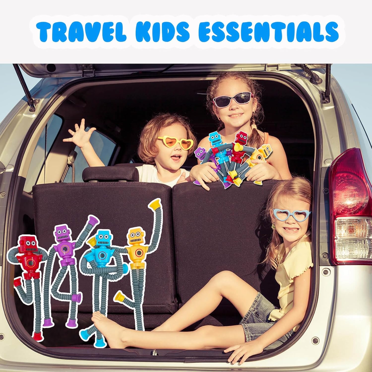 - Portable Travel Toys Bulk: The changing flexible pop tube robots have suction cup limbs that stick to any smooth surface. The pop tube robotic fidget toys can pop, stretch, twist, and wrap. With stretchable limbs and a flexible tube design, they offer endless play possibilities. This stretchy pop figure toy is a great addition to any fidget toy collection, providing on-the-go entertainment for kids.