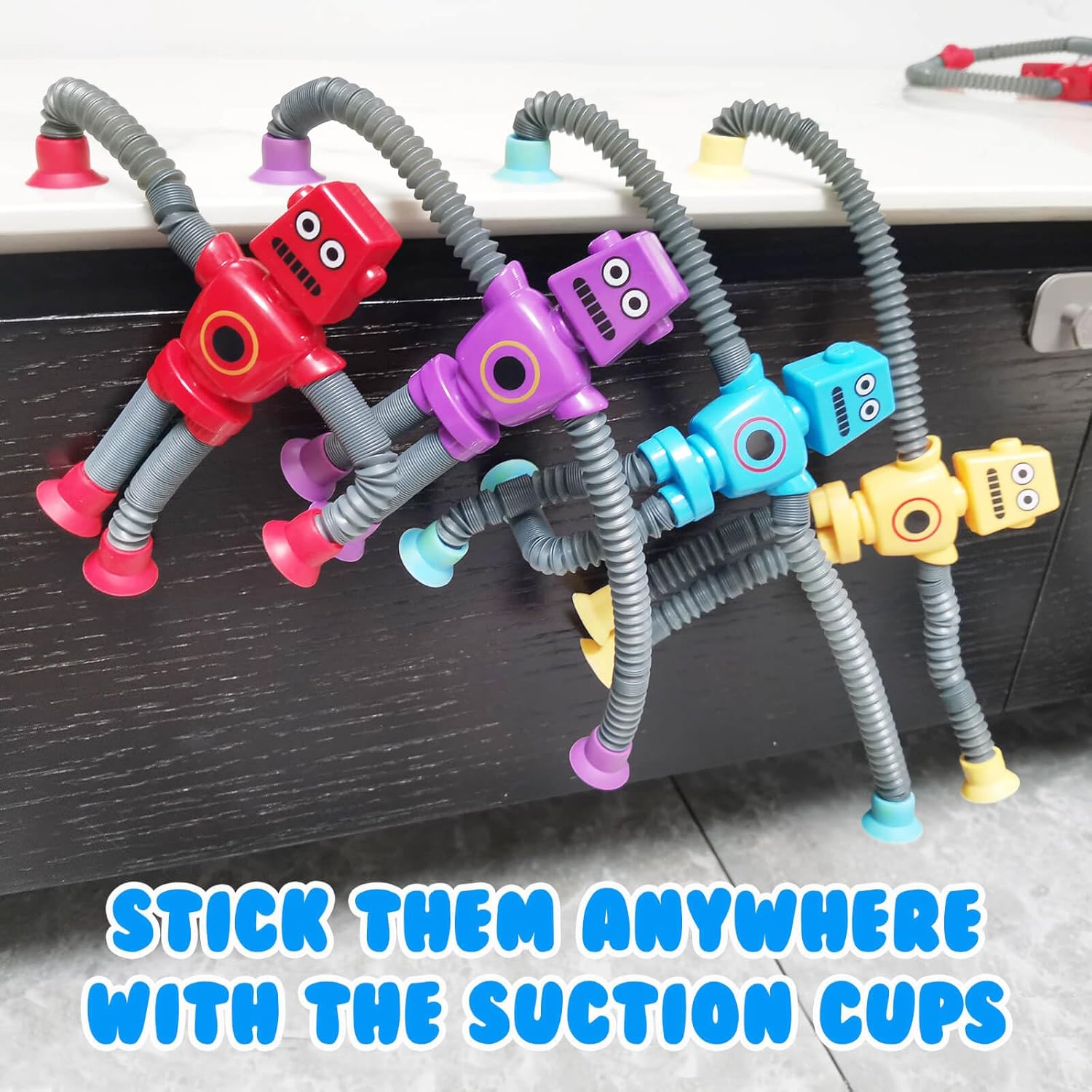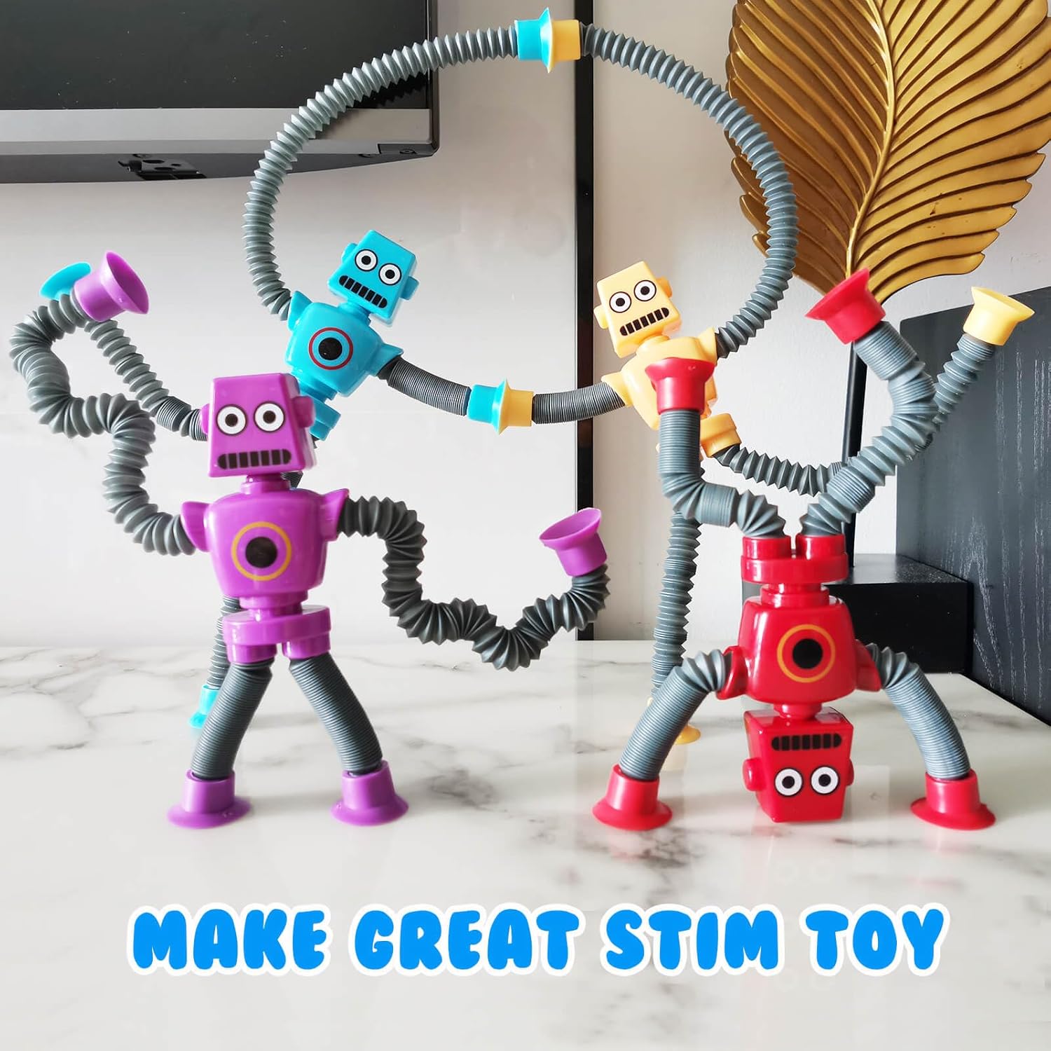 Upgrade Pop Tubes Robot Toy 4 Pcs Easter Basket Stuffers Sensory Toys for Autism Toddler Telescopic Suction Cup Robotics Fidget Toys School Party Favors for Kids Autistic ADHD Travel Toy